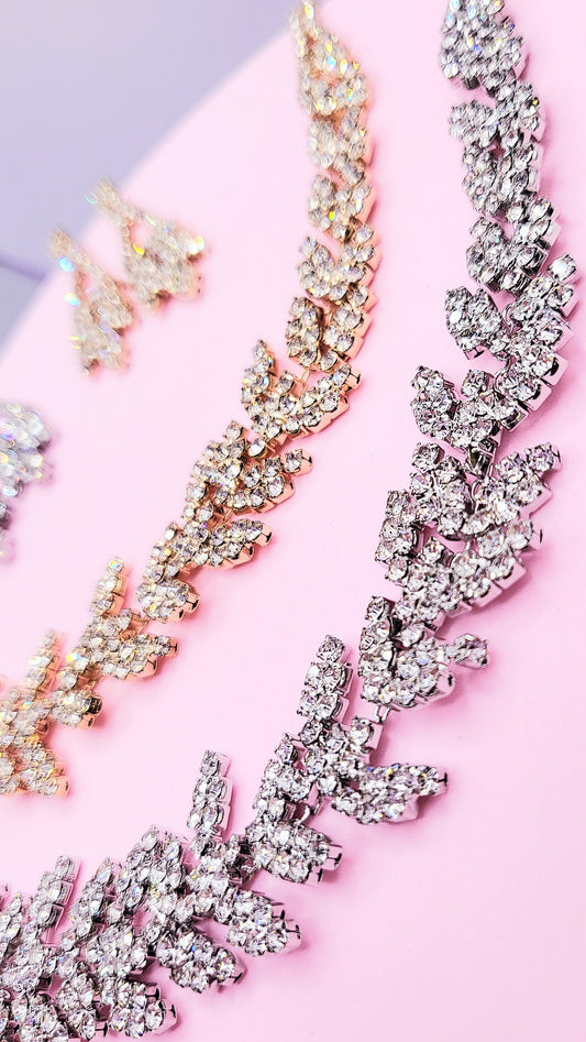 Crystal Leaf Layered Necklace Set