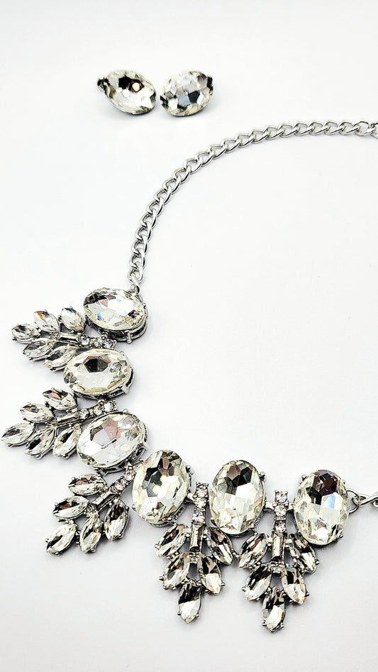 Oval Jewelled Crystal Necklace & Earrings Set