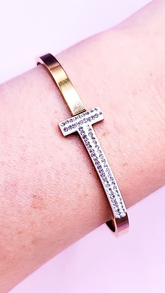 T- Bar Pavé Bangle Stainless Steel
