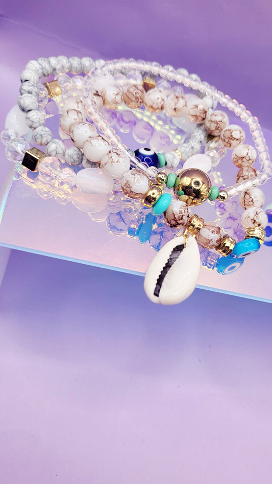 Shell Charm Ceramic Beaded Bracelet Set
