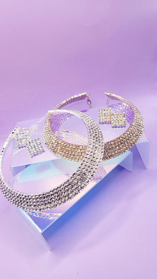 Queen Glam Crystal Duo Choker & Earrings
