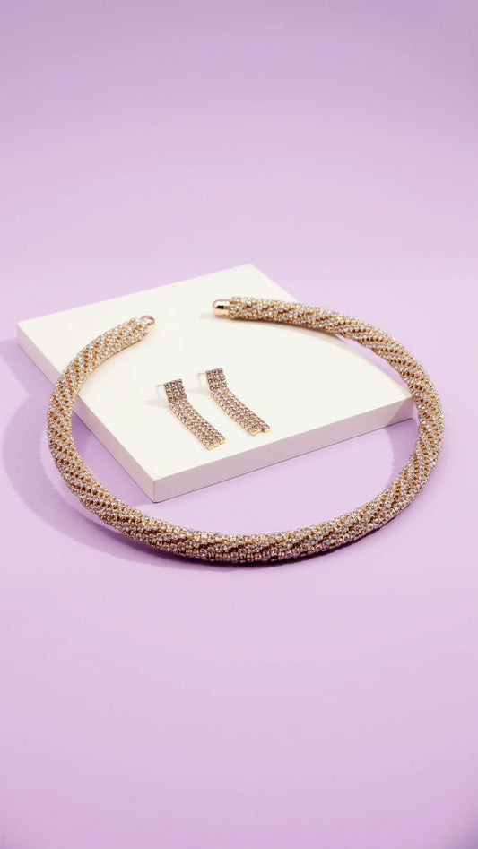 Rope Crystal Choker Necklace & Earrings Set