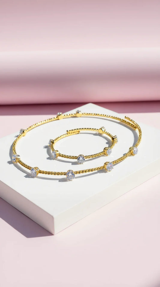 Round Cut Crystal Choker & Bracelet Set