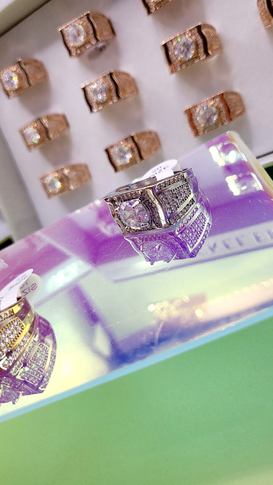 Iced Out Crystal Ring Silver Box set of 12