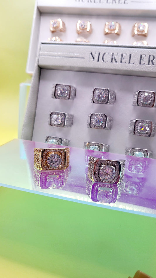 Men's Iced Out Crystal Box Set of 12 Rings
