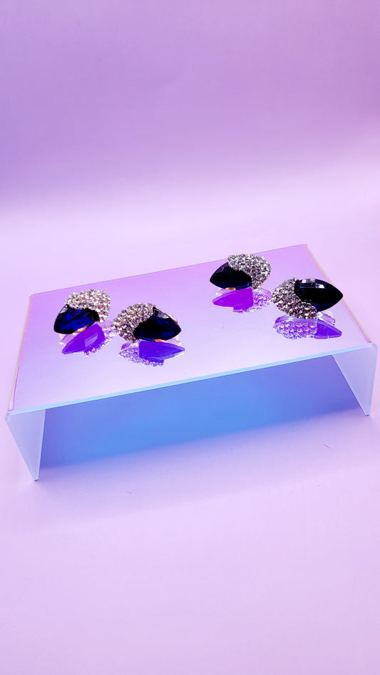 Blue Crystal Non Pierced Clip On Earrings