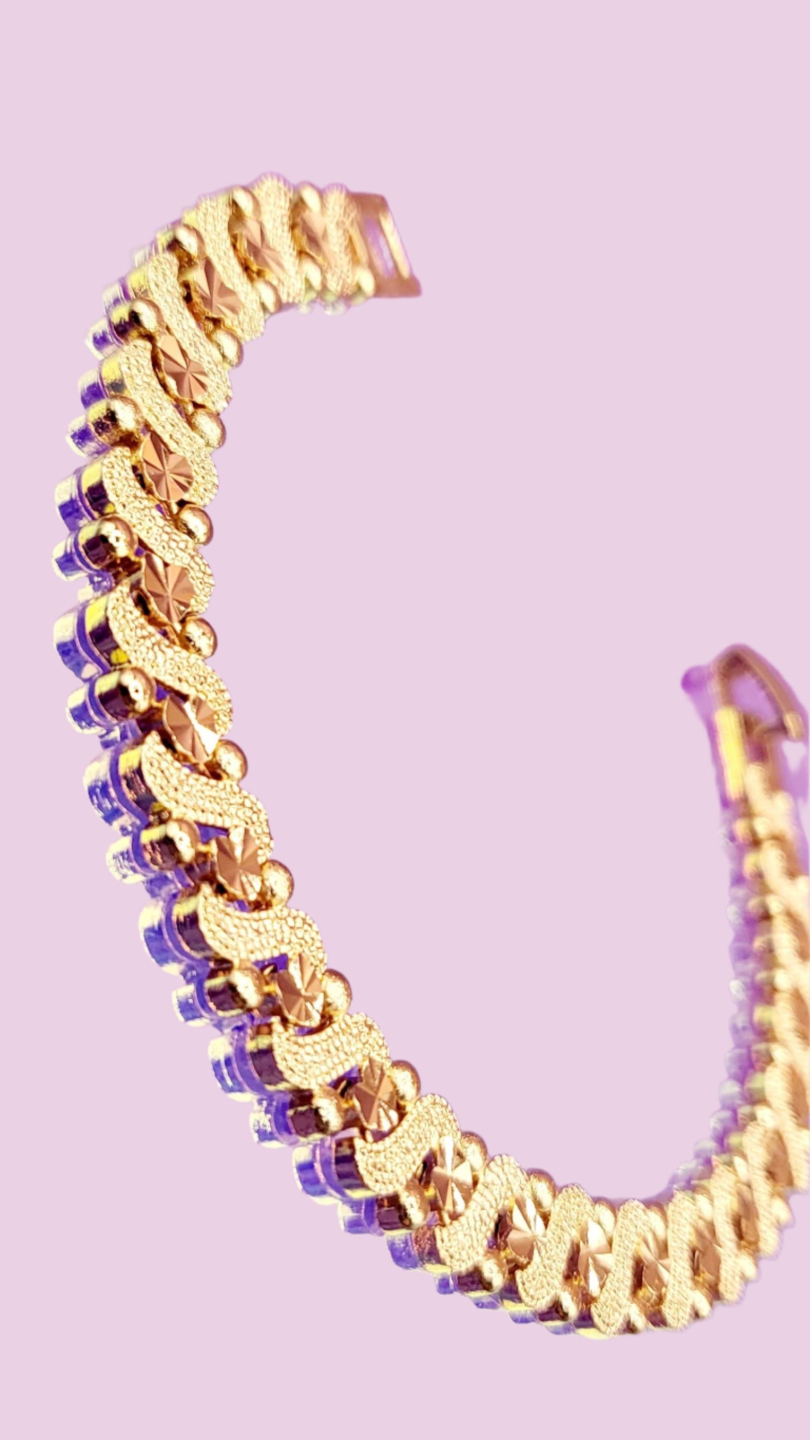 Add a playful twist to your style with this gold colour bracelet, featuring unique patterns and a shiny finish. Perfect for everyday wear or dressing up, it’s designed to stand out whether you wear it solo or layer it with your favourites. Hypoallergenic and nickel-free for all-day comfort and sparkle—your new go-to accessory for effortless, feel-good style.