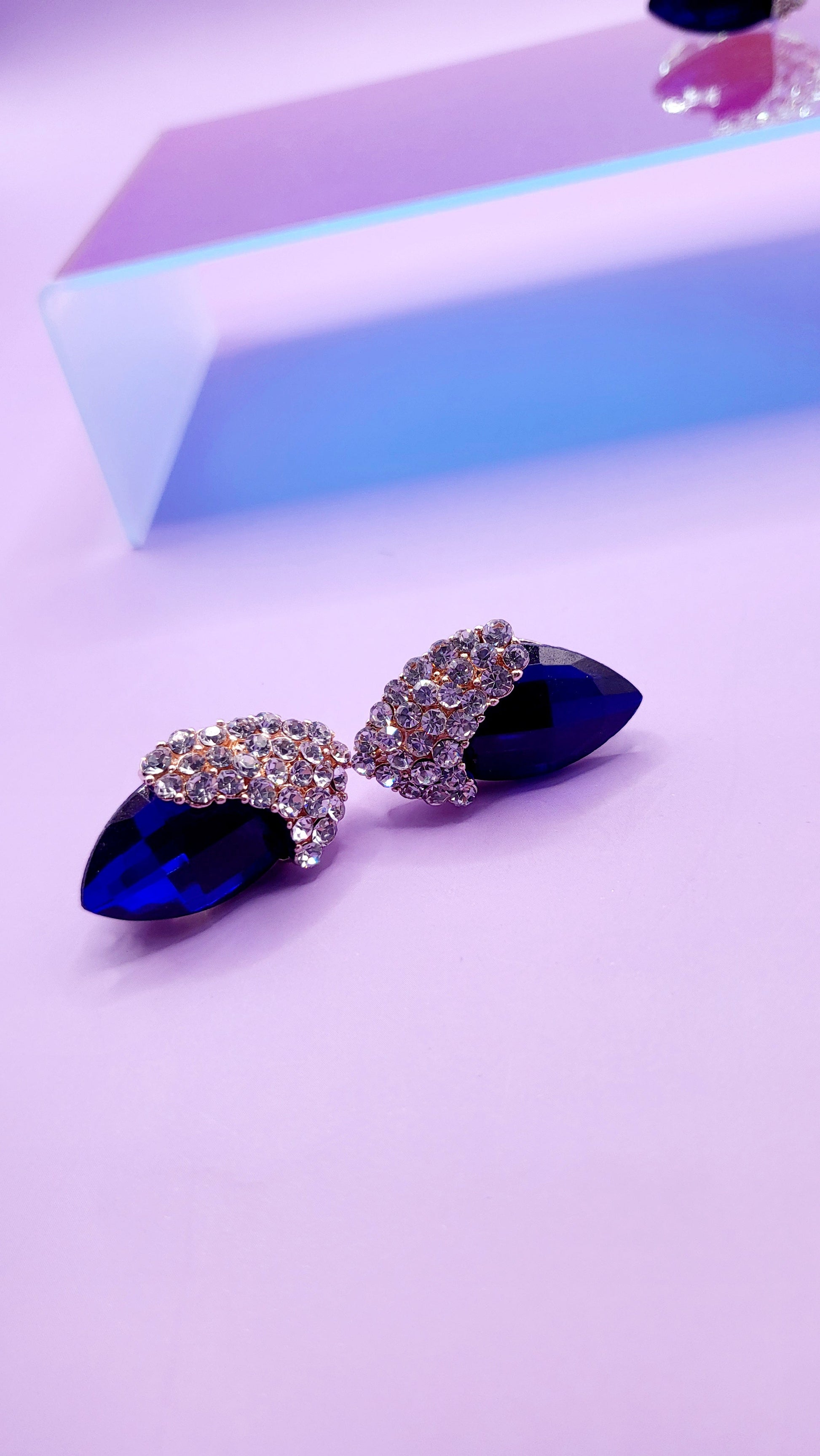 Blue Crystal Non Pierced Clip On Earrings