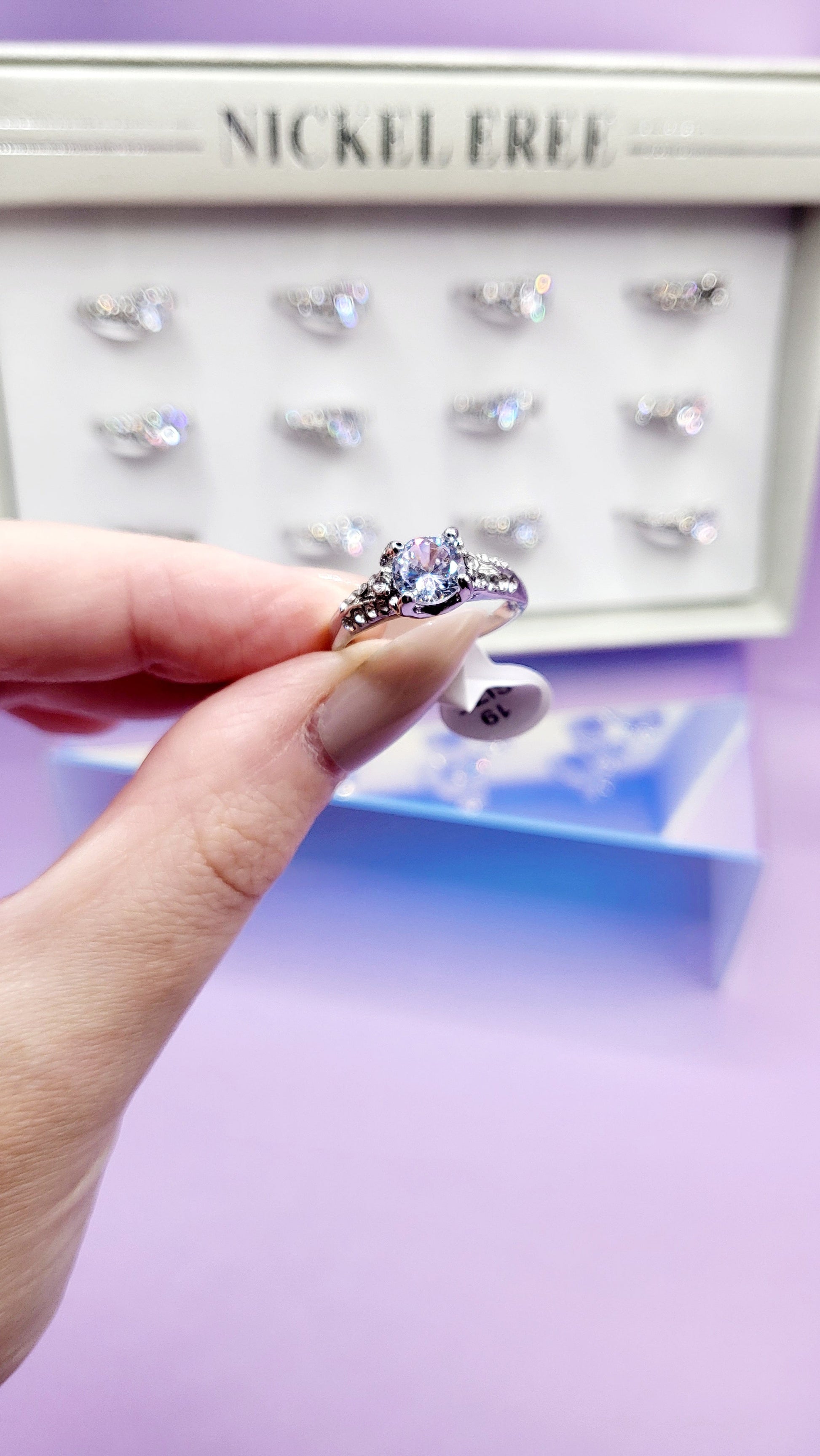 Dainty Crystal Ring Silver Box set of 12