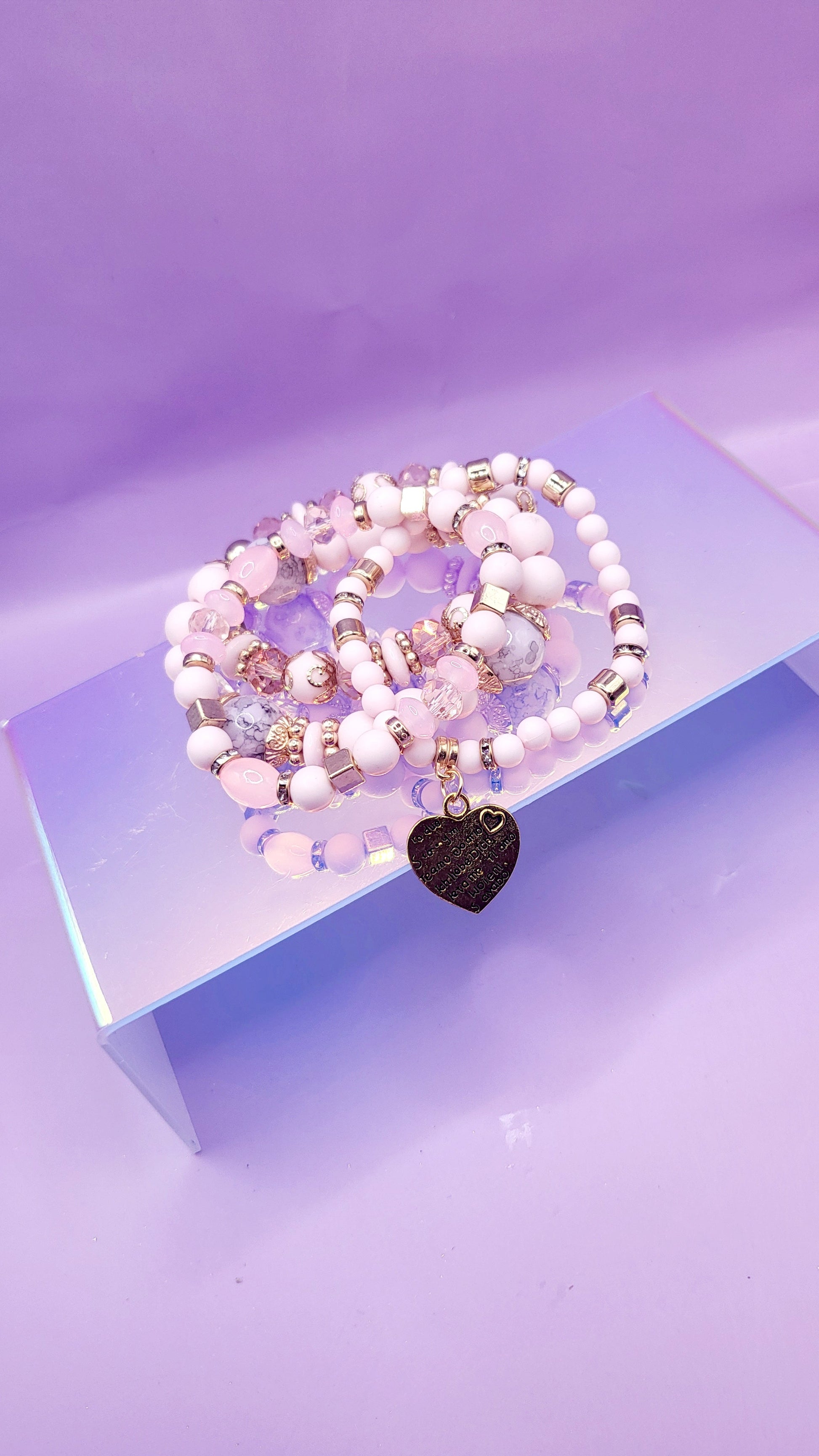 Heart Charm Ceramic Beaded Bracelet Set