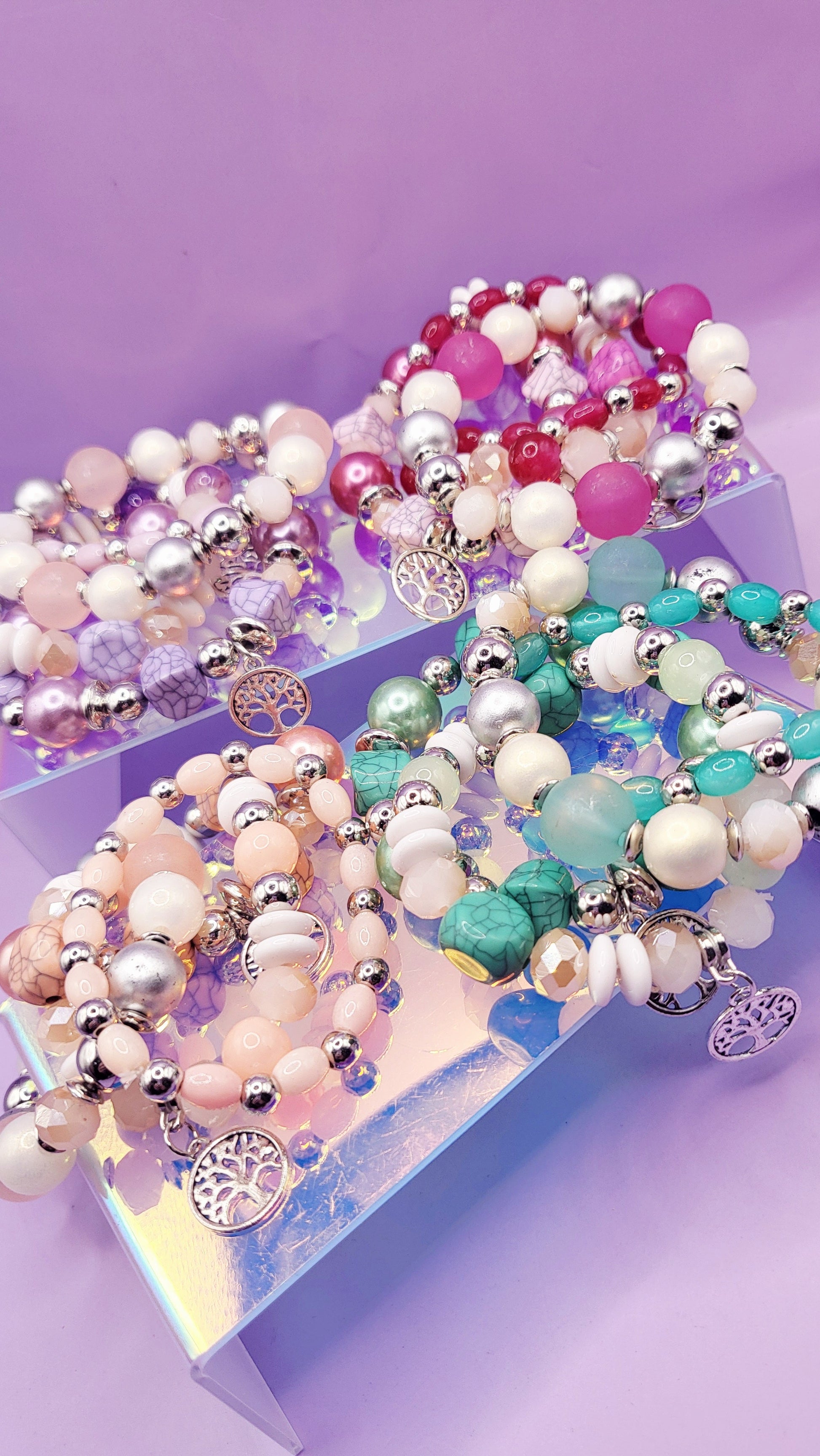 Mini Tree Charm Ceramic Beaded Bracelet Set