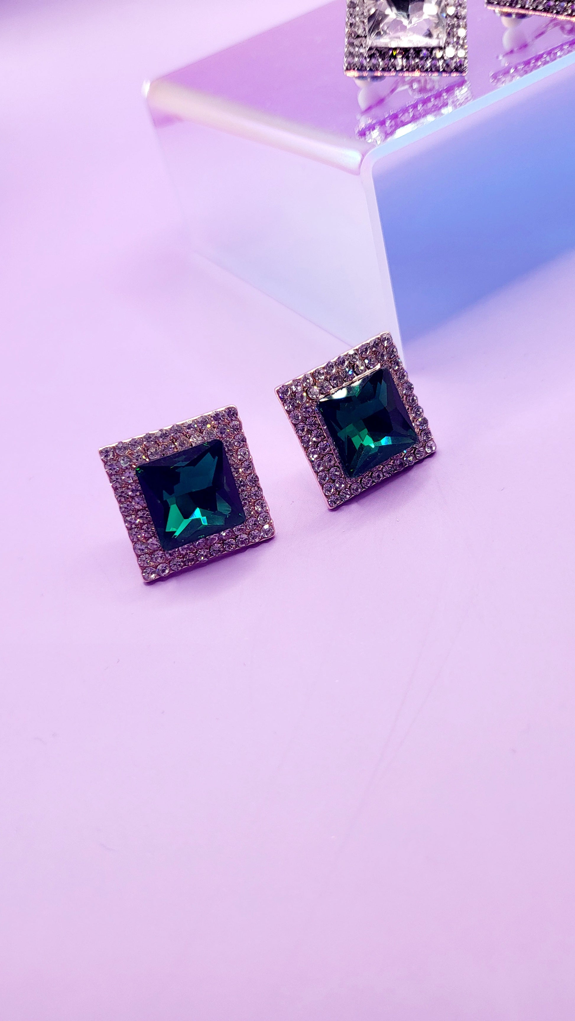 Square Crystal Non Pierced Clip On Earrings