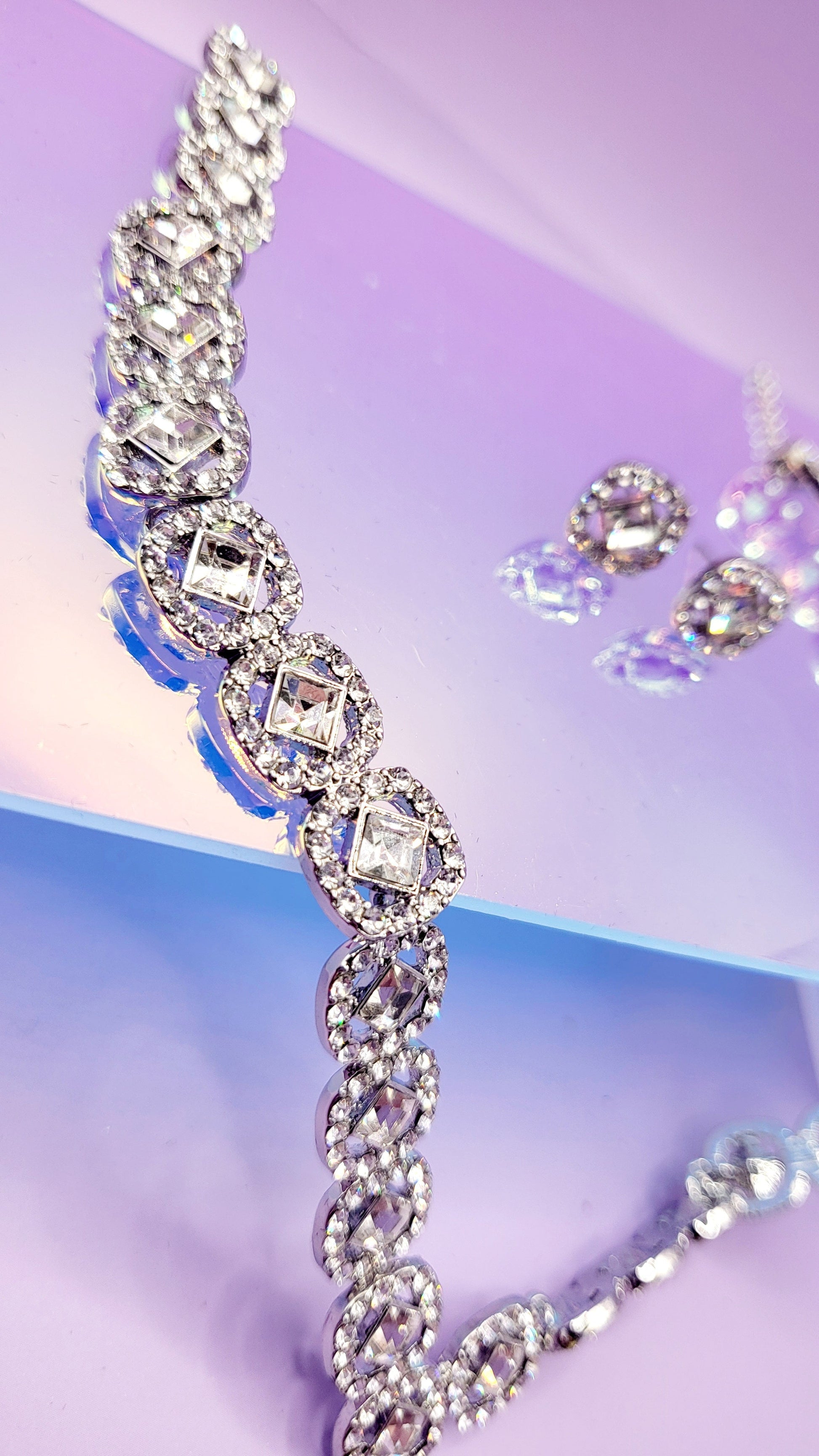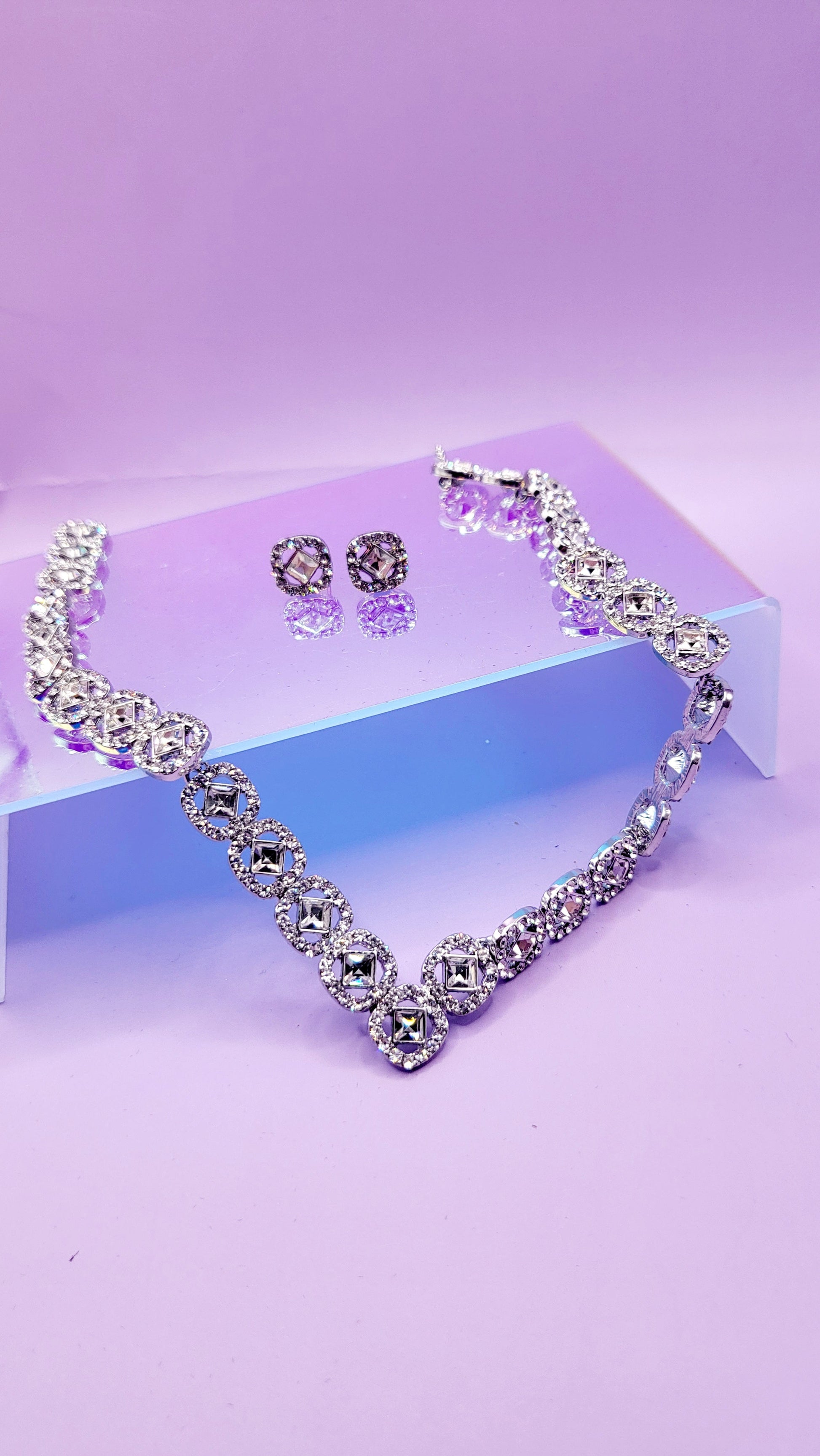 Square Crystal Trio Necklace, Earrings & Bracelet